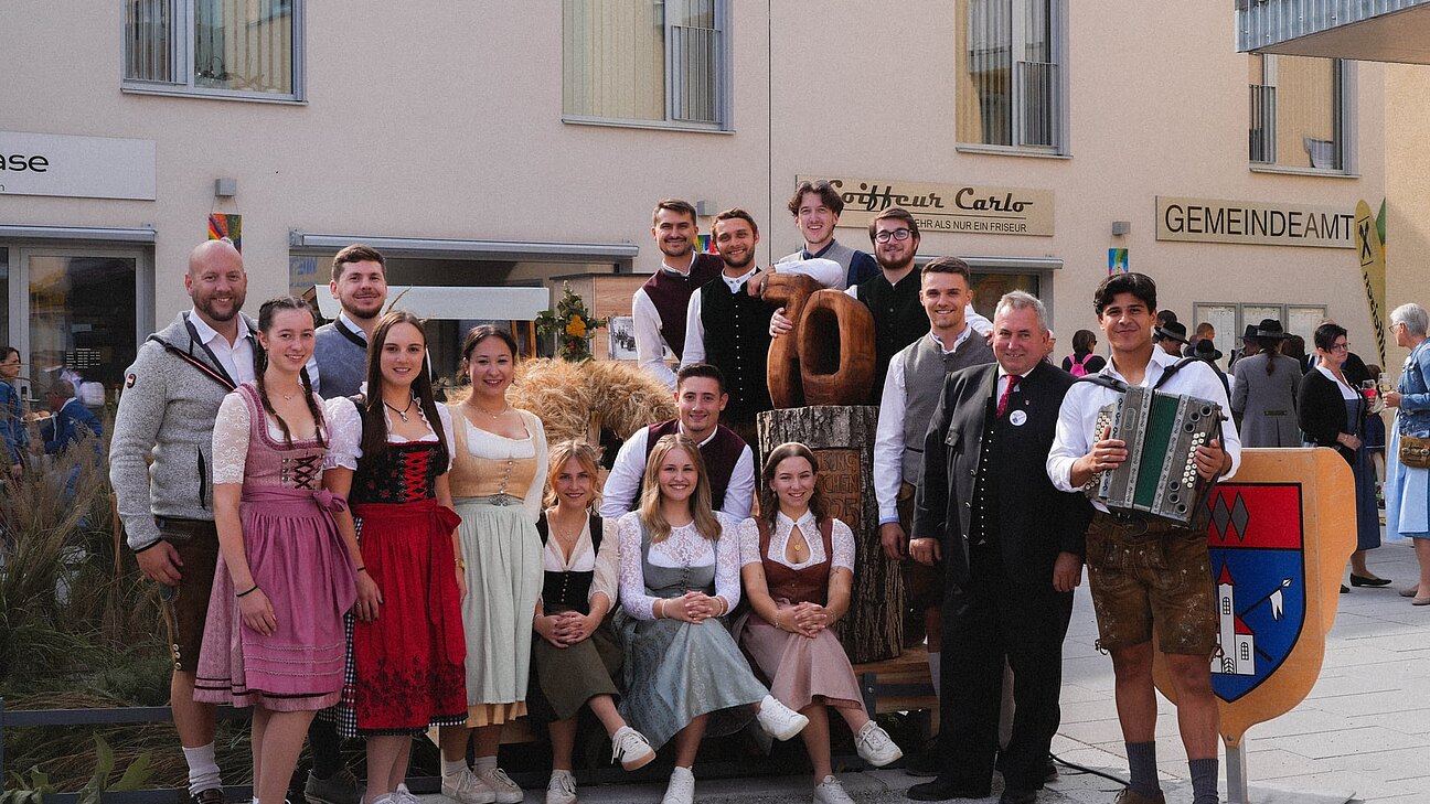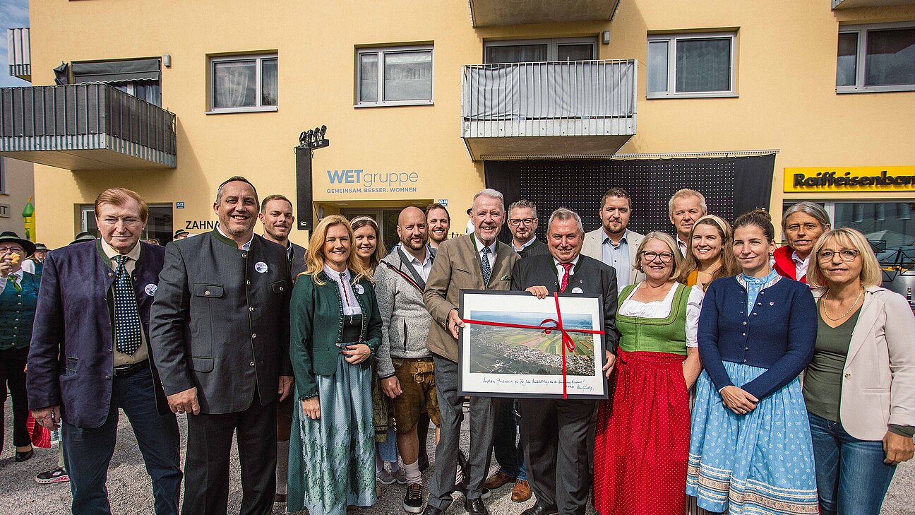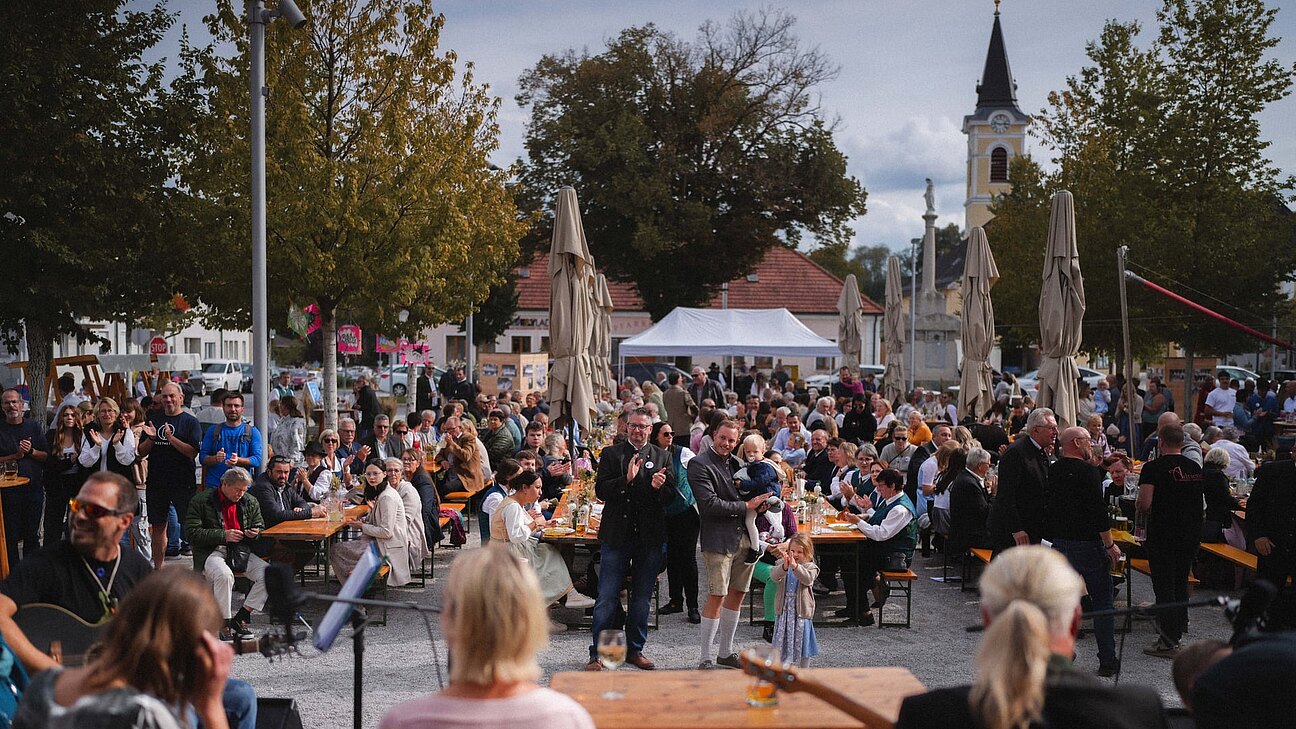 Im Anschluss an die Festmesse zogen Pater Nestor, die Bauern, Kinder und Jugend sowie alle Festgäste zum festlich geschmückten Hauptplatz um 70 Jahre Markterhebung ausgiebig zu feiern. „Wer mich kennt, weiß, dass ich Tage wie diese schätze. Wenn wir zusammenkommen, das Gefühl der Verbundenheit, der Bodenständigkeit feiern, einen Blick zurück und drei Blicke nach vorne werfen, dann bin ich angekommen und freue ich mich. Ich freue mich auch ganz besonders, dass hier in unser Ortszentrum,zum Hauptplatz alle gekommen sind, alt und jung, Bauern und Angestellte, Arbeiter – einfach die gesamte Bevölkerung. Das zeigt mir einmal mehr, dass bei uns in Lanzenkirchen die Welt noch in Ordnung ist!“, so Bürgermeister Bernhard Karnthaler. Außerdem bedankte er sich in seiner Ansprache beim gesamten Organisationsteam, allen voran bei Gemeinderätin Maria Kornhofer für den unermüdlichen Einsatz und die Vor- und Nachbereitung. Eine besondere Wertschätzung hat der Ortschef auch durch den Ehrengast, Bürgermeister Klaus Schneeberger erfahren: Schneeberger überreichte an Karnthaler ein Bild von Lanzenkirchen. Bgm. Klaus Schneeberger: „Das Foto passt zu Lanzenkirchen – ich habe es ganz bewusst ausgewählt – Lanzenkirchen ist stets am Puls der Zeit oder sogar einen Schritt voraus und so wurde auch dieses Bild nicht herkömmlich aufgenommen, sondern mit einer Drohne. Der Blick von oben soll zeigen, dass Bürgermeister Karnthaler immer den Überblick hat und bei allen Details stets den Blick fürs Ganze bewahrt. Ich komme sehr gerne nach Lanzenkirchen und schätze das familiäre Miteinander, hier wird Stadt und Land mitanand gelebt, die Entwicklung Lanzenkirchens in den letzten 15 bis 20 Jahren spricht für sich und ist beispielhaft für die gesamte Region!“, so Bürgermeister Klaus Schneeberger bei seiner Festansprache. Der Eintrag ins Lanzenkirchner Gästebuch durfte dabei natürlich nicht feiern. Er reihte sich in den Reigen von Bundeskanzler Christian Stocker und Landeshauptfrau Hanni Mikl-Leitner ein.
