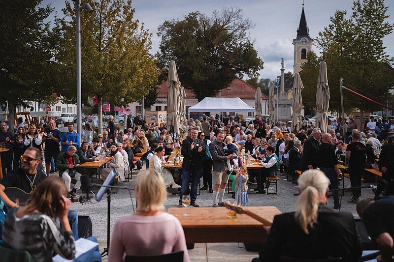 Pünktlich zur Mittagszeit startete nach dem Festakt der Frühschoppen mit dem Musikverein Lanzenkirchen unter Kapellmeister Andreas Schöberl. Das Café Restaurant Adrienn sorgte in bewährter, herausragender Qualität für das Catering und die Versorgung mit Speisen und Getränken. Das Süßspeisen-Angebot wurde traditionell von den Bäuerinnen gebacken und angeboten.