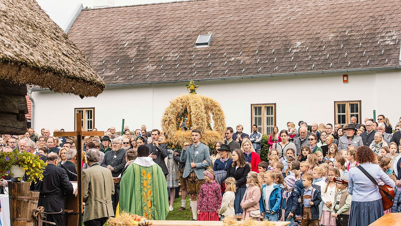Die Marktgemeinde Lanzenkirchen lud am Sonntag gemeinsam mit dem örtlichen Bauernbund zum Erntedankfest. Im wunderschönen Garten des Bauernmuseums der Familie Haberler wurde durch Pater Nestor die Heilige Messe zum Erntedankfest zelebriert. Die Kinder der Volksschule gestalteten den Festgottesdienst feierlich mit, Bürgermeister Bernhard Karnthaler und Hannes Fingerlos, Obmann des Lanzenkirchner Bauernbunds bedankten sich herzlich bei Schulleiterin Judith Moser-Schachinger und dem gesamten Lehrkörper für die Vorbereitung und das Einstudieren der Beiträge.