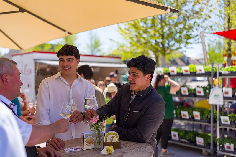 Rund 800 Besucherinnen und Besucher kamen am Samstag ganztägig zum kleinen Genussmarkt und feierten anschließend gemeinsam beim Brauchtumstag am Hauptplatz Lanzenkirchen weiter.