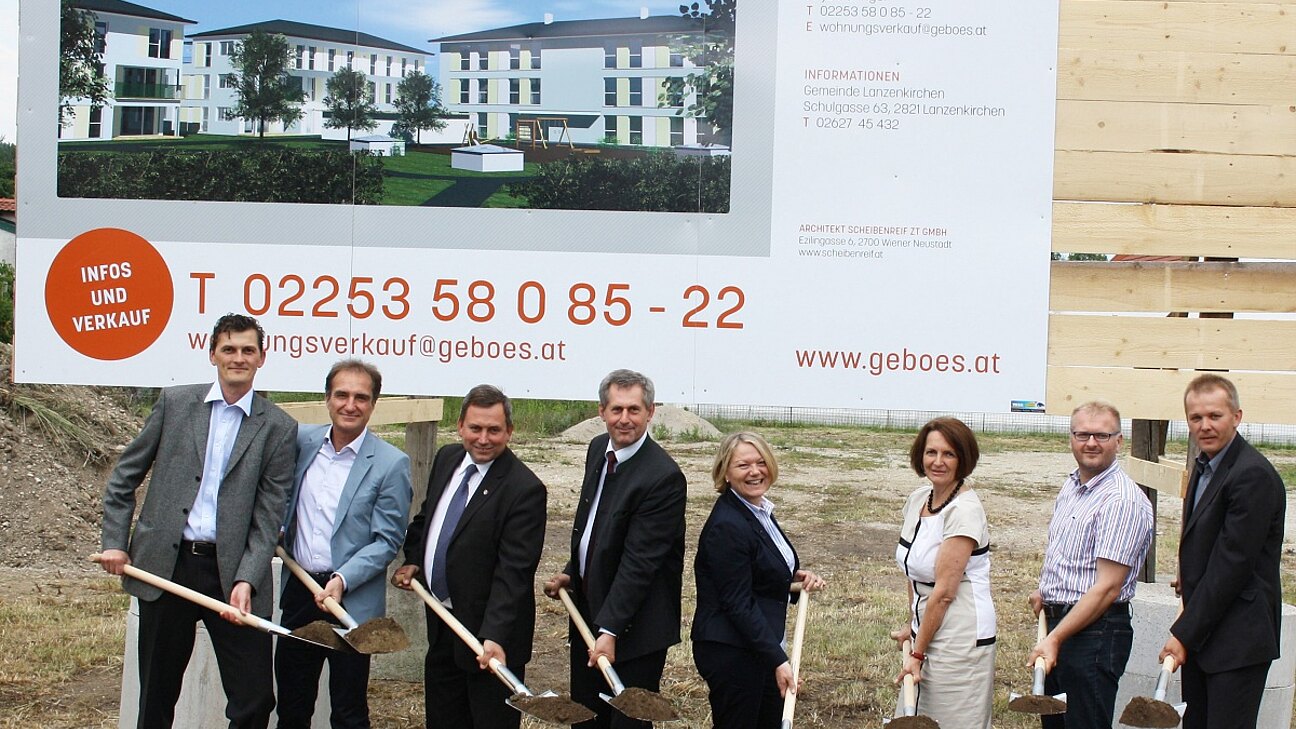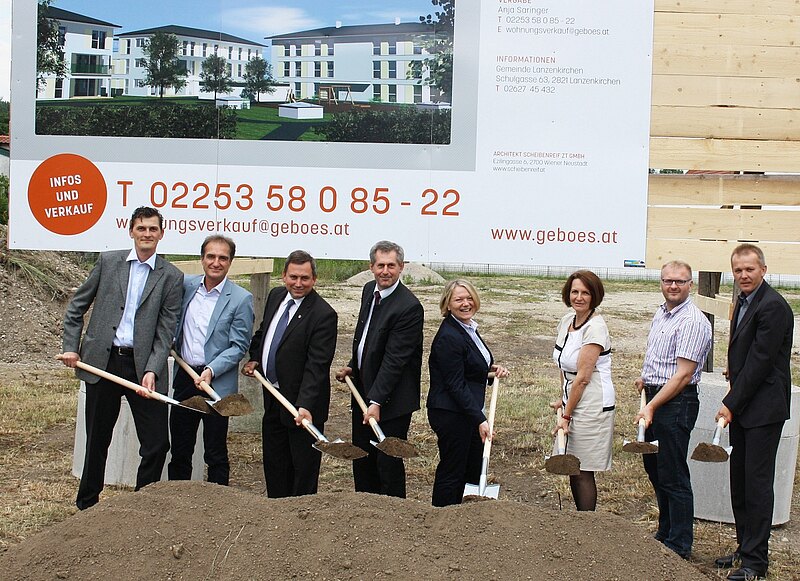 Nach mehrere intensiven Verhandlungen von Bürgermeister Bernhard Karnthaler hat der NÖ Wohnbauförderungsbeirat diesen Wohnbau mit 259.200 Euro gefördert. Der Betrag setzt sich aus einem 25-jährigen Förderungsdarlehen und einen extra Zuschuss zusammen. In der Sportplatzgasse neben den BILLA-Markt fand am 31. Mai der Spatenstich für 19 neue Wohneinheiten der Wohnbaugenossenschaft GEBÖS statt. Nach Ansprachen von der GEBÖS-Direktorin Hedwig Bauer, Bürgermeister Bernhard Karnthaler und von BR Martin Preineder, in Vertretung des Landeshauptmannes, erfolgte der symbolische Spatenstich. Die Bauzeit wird ca. 14 Monate betragen.