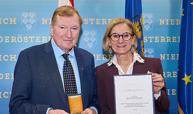 Ein besonderer Dank galt der ausscheidenden Bezirksleiterin Susanne Schmid, „die jahrelang mit großem und vorbildlichen Einsatz den Vorstand der Wir Niederösterreicherinnen im Bezirk geleitet hat“, so Sabine Gremel. Susanne Schmid wurde von der Landesorganisation als Dankeschön die goldene Anstecknadel der Volkspartei (ein V mit einer Rose) und eine Urkunde für ihren goßartigen, jahrzehntelangen Einsatz verliehen.