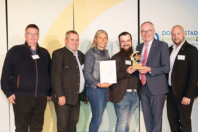 Im Zuge des Regions-Stammtisches Industrieviertel der Dorf- & Stadterneuerung wurde Sascha Tasch mit dem Dorfhelden-Award 2025 für die Gemeinde Lanzenkirchen von LH-Stellvertreter Stephan Pernkopf ausgezeichnet.